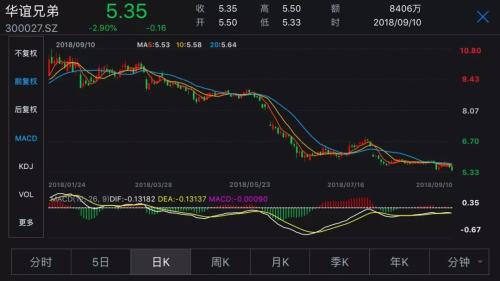 因各种负面传闻影响,华谊兄弟股价大幅下滑。今年6月以来,公司股价跌幅已达34%,市值蒸发近79亿元。截至9月10日收盘,华谊兄弟报收5.35元/股,下跌2.9%。