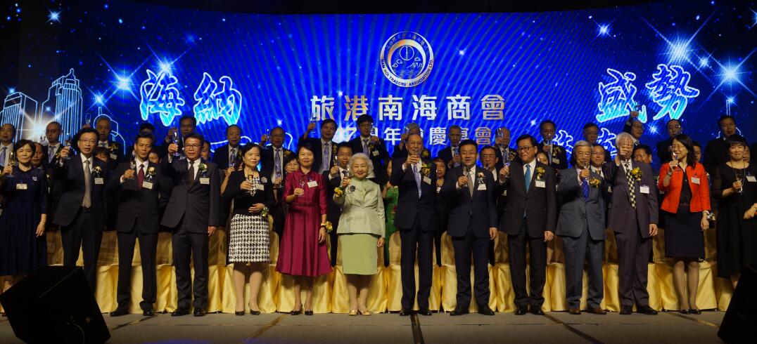 旅港南海商會成立107周年會慶聯歡宴會,一众嘉宾举杯祝愿美好新征程。