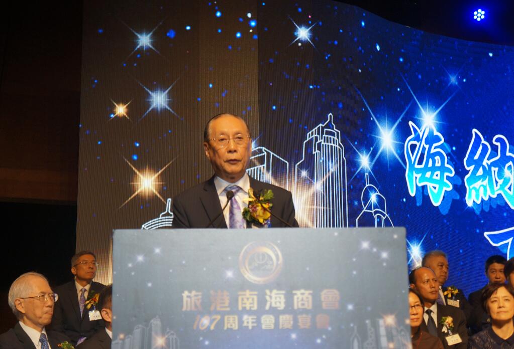 【香港商報网訊】實習記者張芃芃報道:旅港南海商會日前假香港會展中心會議廳隆重舉行該會成立107周年會慶聯歡宴會。旅港南海商會理事長關亨時,名譽會長梁愛詩、林健鋒,名譽顧問石漢基,全國政協文史和學習委員會副主任王國強,佛山市人大常委副主任麥潔華、市政協副主席朱華仙,南海區政府區長顧耀輝、副區長冼富蘭出席主禮并進行亮燈儀式,慶祝商會海納百川、南海盛世繁華。