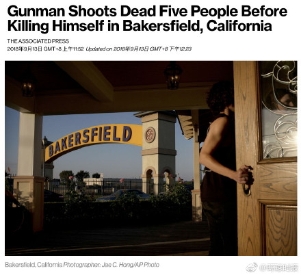 美联社9月12日报道,当地时间12日晚上,美国加利福尼亚州发生枪击事件,一名男性枪手枪杀5个人后自杀。