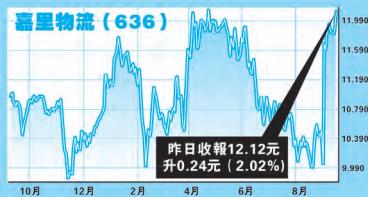 嘉里物流近期股價逆市上升,昨日收報12.12元,預期市盈率不足15倍,可候12元以下分段吸納。