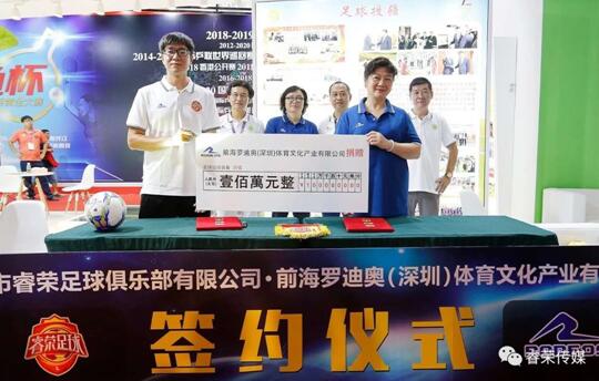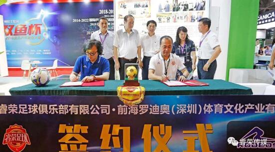秋空蓝碧,微风送爽??4日,2018广东体博会在广州琶洲会展中心的保利世贸博物馆盛大举行。在本届体博会上,来自深圳的前海罗迪奥体育文化产业有限公司与汕尾睿荣足球俱乐部在广东省体育局、足协的领导和参展者的见证下,举行了现场签约仪式,仪式内容主要为今后的战略合作,其中包括了罗迪奥体育文化产业有限公司向汕尾睿荣足球俱乐部捐赠价?00万元的足球运动装备?/p>