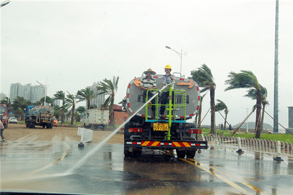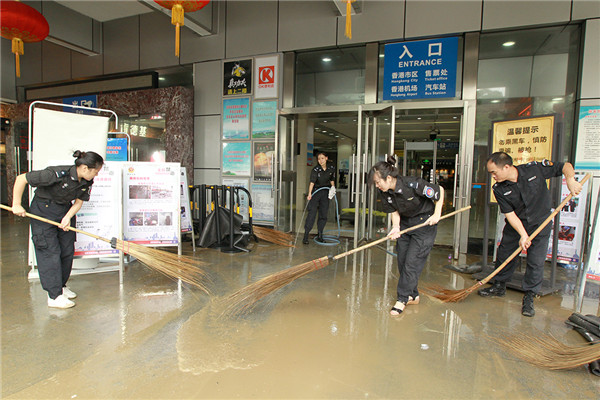 17日上午,记者驱车沿珠海情侣中路行走看到,部分路段被泥浆淹没,很多环卫人员正在对泥浆淹没路段进行清洗中。在九洲港路段,虽然昨日九洲港口岸检验楼外围部分水漫高达1米多,但口岸检验楼由于采取了有效防护,海水未漫到大厅。目前,数十名九洲集团员工对九洲港口岸外围进行大清扫,同时,也对进出港相关检查设备进行调试,做好通航准备工作。