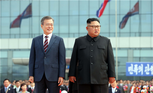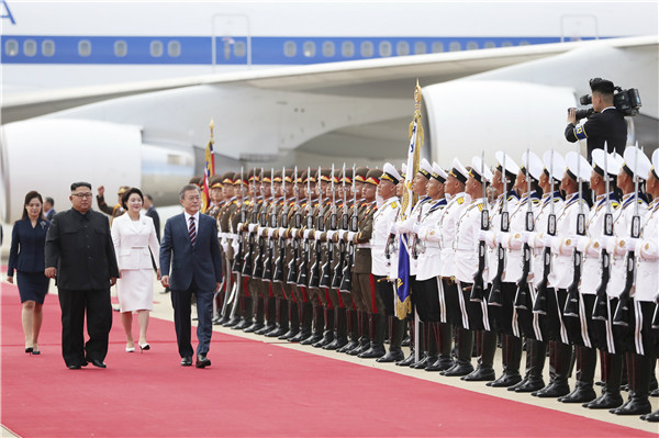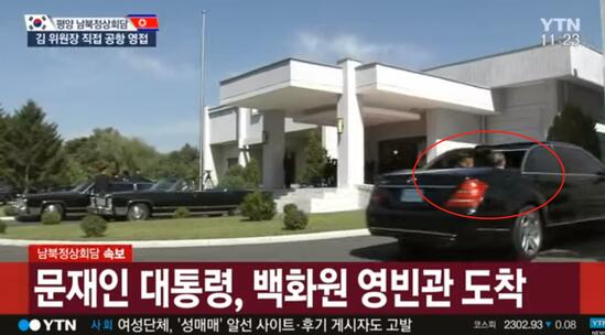 在欢迎仪式后,文在寅与金正恩离开机场,前往酒店。