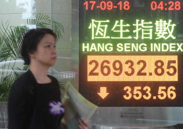 港股昨日再跌353點。 中通社