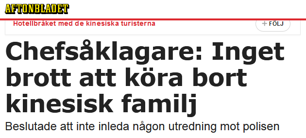 此外,据环球网报道,瑞典检方媒体官员卡尔⋅吉格兰表示,瑞典检查机关对案件进行评估后,认定瑞典警察没有实施任何犯罪行为,因此不会继续开展调查。他还表示,检方只会调查警察是否犯罪,不会讨论其行为是否得当。