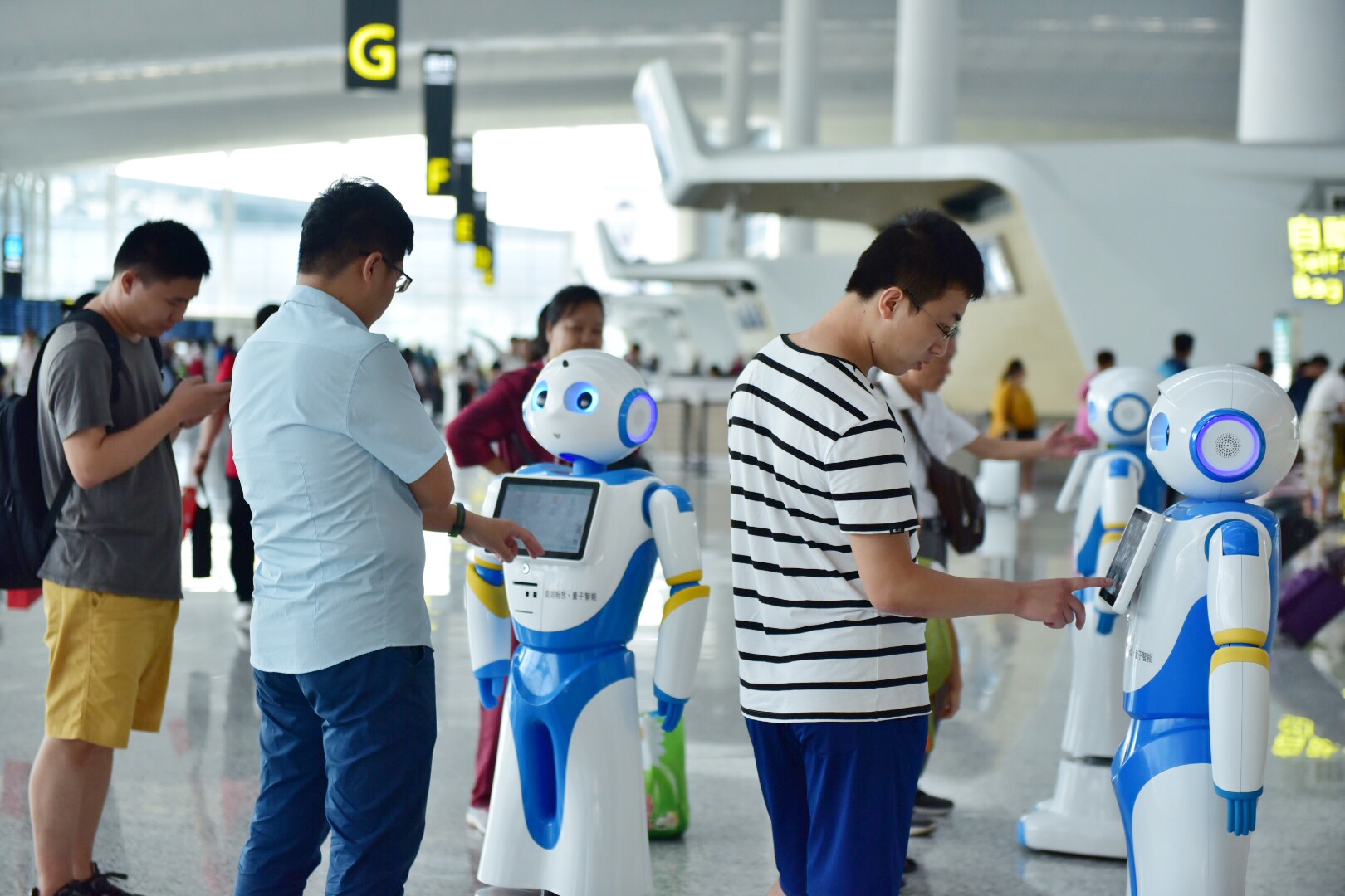 据悉,这些机场问询引导机器人,由白云机场与南湖畅想携手合力打造,整个项目周期计划共投入200台,覆盖两个航站楼旅客出行的各个流程。