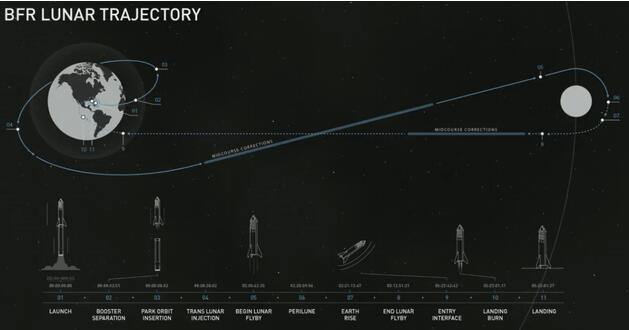 马斯克公布了BFR飞向月球的路线图: