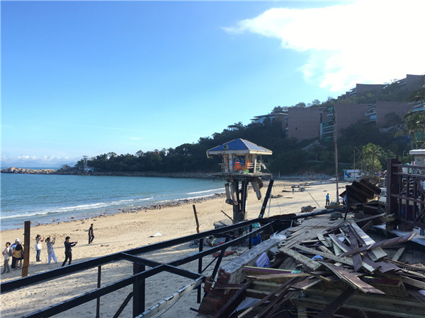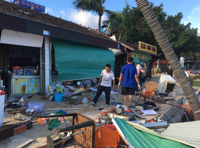 小梅沙度假村景区,公共、建筑设施及构筑物全部受损。