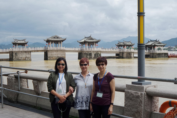 9日,考察團一行赴潮州古城外參觀始建於宋朝年間的韓江「湘子橋」(又名廣濟橋),此橋被著名橋樑專家茅以升譽為「世界上最早的啟閉式橋樑」。遊覽潮州古城,團友行於巷子、街頭感受歷史悠遠的文化氣息。街道兩旁老字號街舖林立,特色小吃、手工製品琳瑯滿目,目不暇給,到此一遊,感覺不愁買不到「心水」東西,只擔心荷包不夠滿。英國華僑、坪洋村原居民陳房水逛到炊具舖,看到一把銅製湯匙,他表示,他家中亦有一把傳世之寶的純銅匙,比店舖這把銅匙輕身、好用;有團友在鑼鼓店一邊敲鼓,一邊風趣地說,打鼓、打鼓、打鼓嶺也,異鄉覓知音。