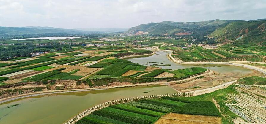 经过治理后的宁夏固原市西吉县葫芦河(8月8日无人机拍摄)。新华社记者王鹏摄