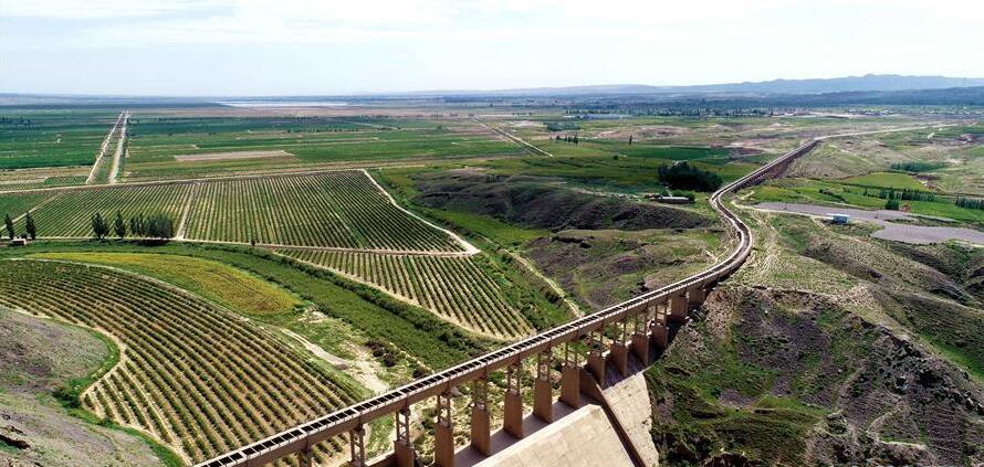 这是宁夏固海扬水工程长山头渡槽(9月6日无人机拍摄)。 新华社记者王鹏摄