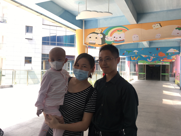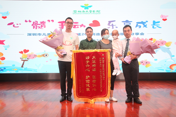 深圳市儿童医院第200例骨髓移植患者安安与父母亲。