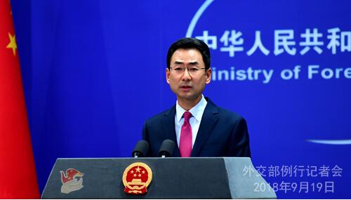 原标题:2018年9月19日外交部发言人耿爽主持例行记者会