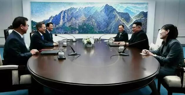 首次会晤当天,两个人的话题就从会场悬挂的山水画开始,画上是朝鲜的长白瀑布和韩国的城山日出峰。