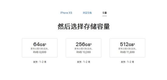 iPhone XS 64GB、256GB和512GB对应售价分别是8699元、10099元和11899元;