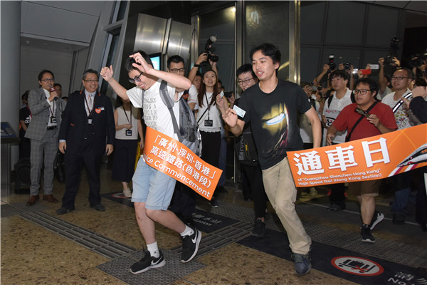 廣深港高鐵香港段昨起投入運營,95對高鐵列車飛馳往來香港與內地數十個城市,乘客爭相搭乘「搶鮮」體驗,香港正式邁入「高鐵新時代」。另據中國鐵路總公司客運部消息指,廣深港高鐵首日開通上座率百分之百。
