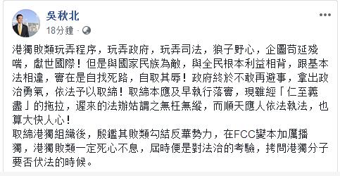 吴秋北FB截图