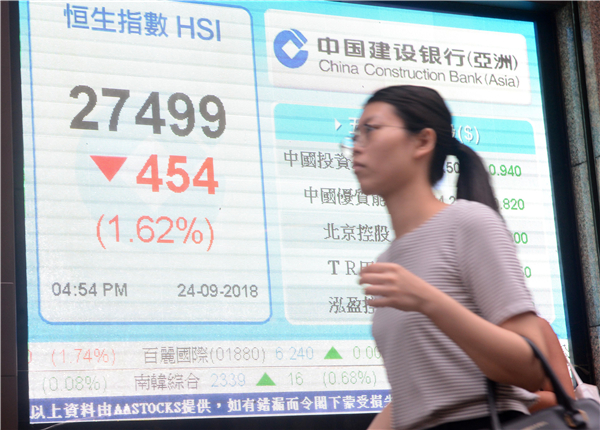 【香港商報网訊】記者吳天淇報道:中美互相向對方加徵關稅措施昨天起生效,加上地產股捱沽,恒指昨低開169點後跌幅擴大,最多下挫528點,低見27425點,收市仍挫454點或1.62%,報27499點。國企指數全日收跌199點或1.81%,收報10827點。主板成交逾693億元;港股通暫停。昨天中秋節,內地股市亦休市。