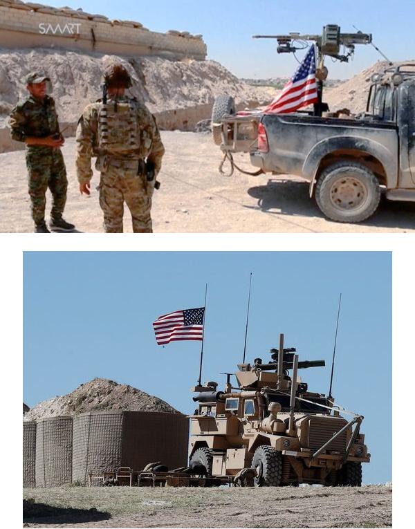 2000名美军目前分布在库尔德武装控制区内,不论是美军自己驾驶的车辆,还是顾问乘坐的皮卡, 一律挂着巨大的美国旗,尽可能制造存在感……