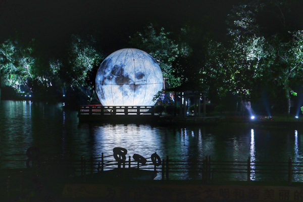 【香港商报网讯】记者胡啸原 通讯员程楚茵报道:22日晚,“湖光山色”2018西樵山天湖璀璨灯光夜活动在西樵山天湖公园启动,灯光展包含六大主题区域,目之所及五光十色的灯饰反映西樵山春夏秋冬四季特色,天湖公园变身为流光溢彩的“灯海”,为中秋佳节增添浓郁的节日气氛,首日便已吸引珠三角地区愈千名市民游客夜游西樵山。