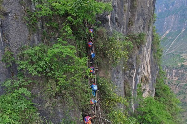 速批貸款建設「懸崖村」:四川涼山州「懸崖村」村民和孩子出行難的情況被媒體廣泛報道後,農發行快速反應、上下聯動,在最短的時間內審批貸款6000萬元,幫助「懸崖村」修建鋼管搭建的鋼梯,改善交通出行條件,頗受好評。圖為四川涼山懸崖村的孩子爬800米懸崖上學。