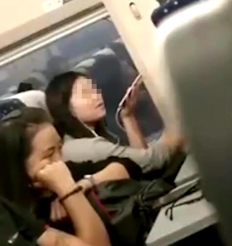 在视频中,一位女乘客先是被拍到在车厢中大声聊微信,不时飙出粗口,而后,又和前来劝阻的乘客、乘务员、乘警产生争执。