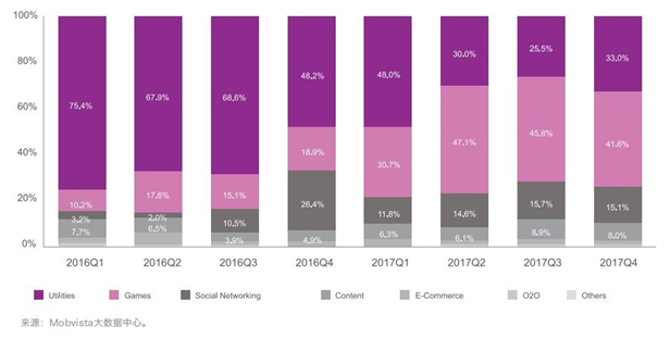2016-2017年國內各類型出海APP下載量佔比變化