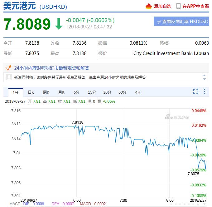 就在香港加息前夕,港元兑美元近日频频出现大幅飙升态势。9月21日,港元对美元日内一度大涨400多点,创下2003年9月以来最大涨幅,一度突破7.80的强弱兑换保证中位数,重回去年11月高点。