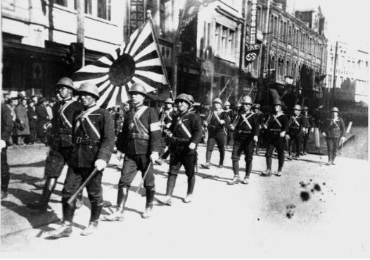 日本侵略时期使用的旭日旗 图片来源:历史资料