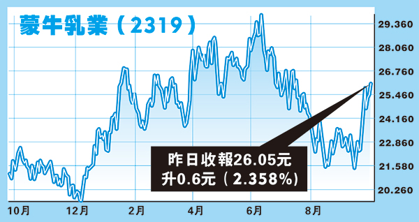 近年內地乳製品行業復蘇,作為行業龍頭,蒙牛 (2319) 在規模和盈利等各方面表現均理想。旗下雅士利 (1230) 及現代牧業 (1117) 於上半年的經營狀況明顯好轉,有助為蒙牛帶來更多正面作用。