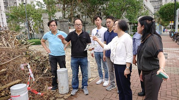 另外,天水圍嘉湖北「官商民」早前合力為風災善後,奮拼3天後,災區基本上已復原,在中秋節翌日,食物及卫生局局長陳肇始在當區區議員李月民帶領下到區內視察,他介紹指能夠在災後快速復原,原因包括有數目冠絕全港的逾600人次義工協助、中國建築工程(香港)等商界調派重型吊車幫忙及跨政府部門全面參與等。陳肇始感謝市民的積極參與及商界的無私奉獻,更有公務員團隊緊守崗位合力抗災。