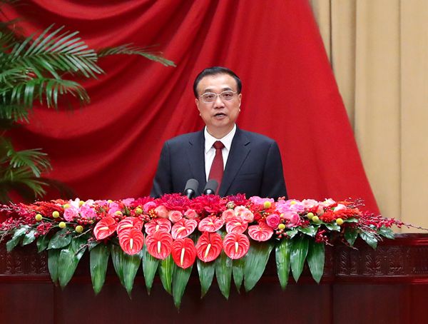 李克强最后说,伟大事业需要全体中国人民共同奋斗、克难攻坚。让我们更加紧密团结在以习近平同志为核心的党中央周围,高举中国特色社会主义伟大旗帜,脚踏实地,开拓创新,为实现“两个一百年”奋斗目标、建设富强民主文明和谐美丽的社会主义现代化国家、实现中华民族伟大复兴中国梦而不懈努力!
