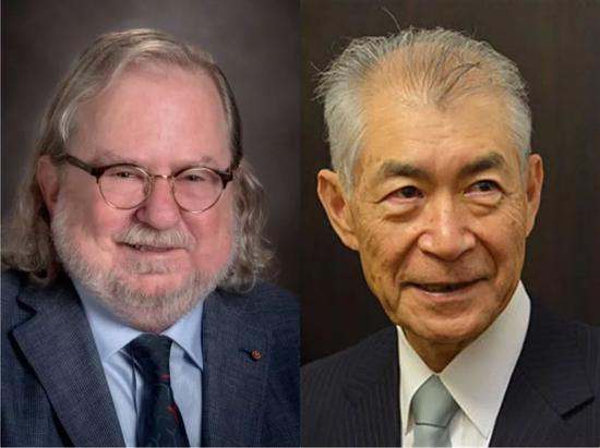 美国科学家詹姆斯·艾利森(左)和日本科学家本庶佑。