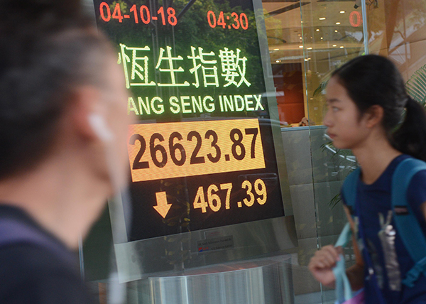 恒指昨收報26623點,為2003年4月「沙士」後15年來首次低於道指。 中新社