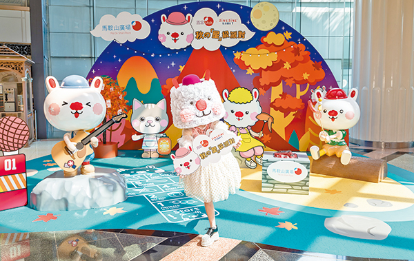 秋意漸濃,星星兔彈着結他來到馬鞍山廣場,在橙紅的楓葉樹下為好友們獻唱,一起聽着動人歌聲,吃着美味燒烤,玩着可愛燈籠,非常溫馨!地上更畫上充滿兒時回憶的跳飛機遊戲,讓粉絲們能夠與星星兔及其朋友們一起遊玩,拍照留念。楓樹亦掛滿中秋燈謎,以供顧客競猜應節。