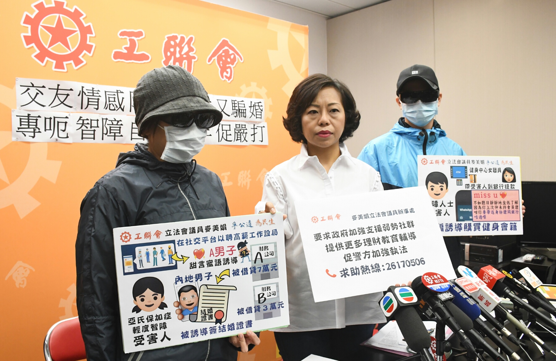 【香港商報网訊】記者葉佩瑜報道:有人利用網上社交平台交友,但亦有不法之徒看準機會騙財。工聯會立法會議員麥美娟近日接到投訴,揭發有騙徒藉網上社交平台與手機通訊程式鎖定患有智障、自閉症的單身青年行騙,有受害者被誘導購買健身會籍,更有人被騙參與假結婚及誤墮借貸陷阱。她促請政府加強對弱勢群體的理財教育及輔導支援。