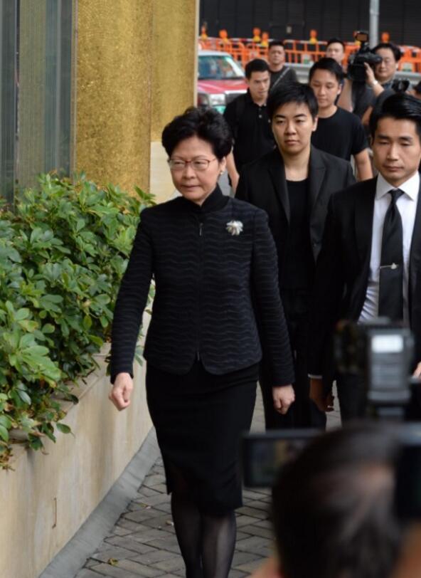 高錕遺孀高黃美芸早上近10時,在親友陪伴下到達殯儀館,到場致哀的包括律政司司長鄭若驊、教育局局長楊潤雄等。