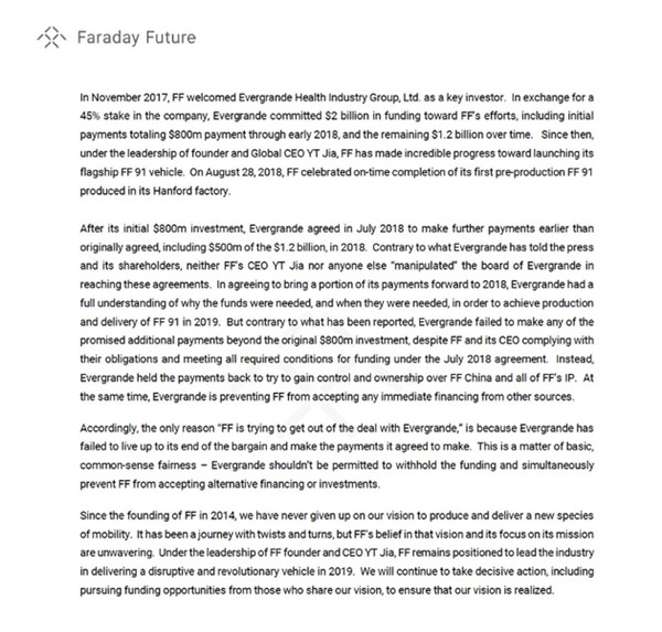 法拉第未来声明