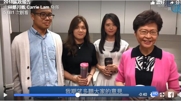 影片全長1分半鐘,總結了林鄭籌備《施政報告》的工作,包括舉辦43場諮詢會議、接觸超過700名各界代表、製作9條宣傳片,及首次在fb直播聽市民意見,並錄得180000人次瀏覽和收到12800條公眾意見等等。
