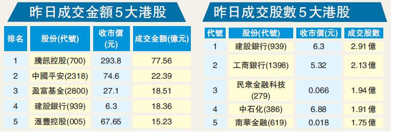 恒指昨走勢反覆,開市後反覆向下,曾挫135點,見26067點,再創近15個月低,守兩萬六,之後曾倒升164點,見26366點全日高,惟收市無功而返。騰訊(700)收報293.8元再創逾一年低,跌幅1.7%,以收市價計,騰訊股價較今年高位(476.6元)大跌近40%,市值跌穿2.8萬億元,更跌出全球十大;吉利(175)9月銷量按月微跌,股價創16個月低,收市插5.2%。