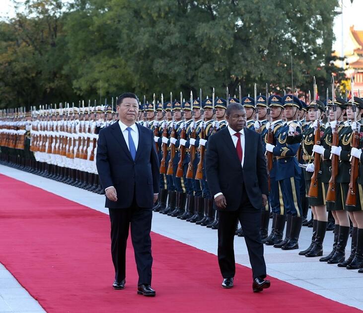 10月9日,国家主席习近平在北京人民大会堂同安哥拉总统洛伦索举行会谈。这是会谈前,习近平在人民大会堂东门外广场为洛伦索举行欢迎仪式。 新华社
