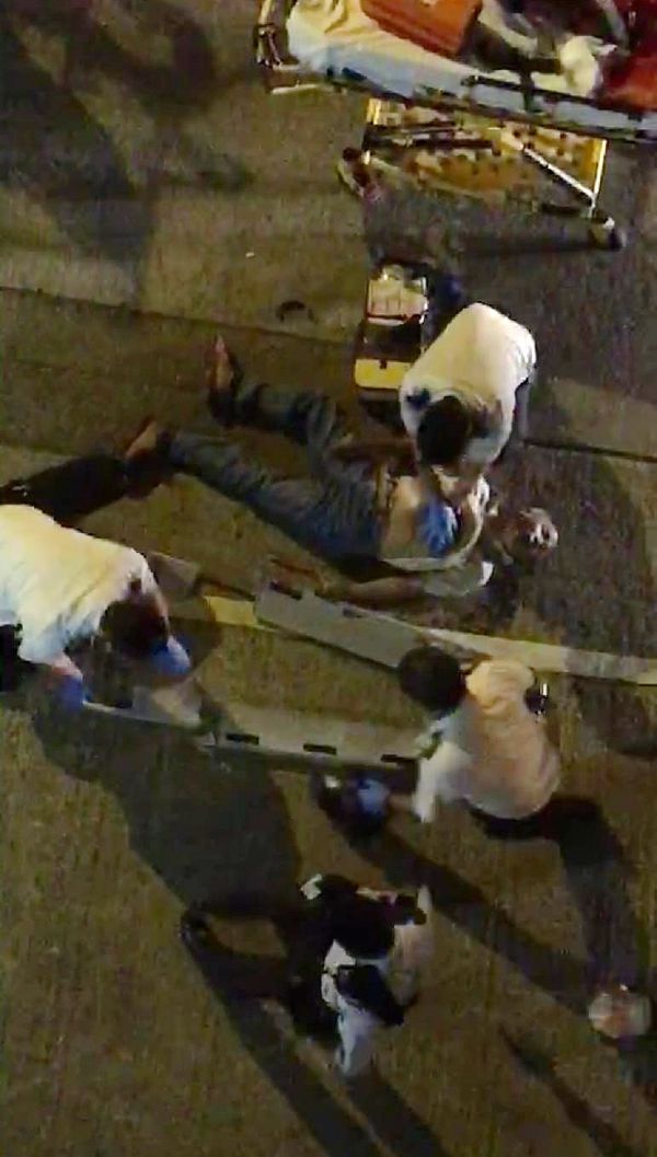 涉案老翁從大廈高處墮地不起,救護員到場急救,惟送院搶救後不治。 市民提供圖片