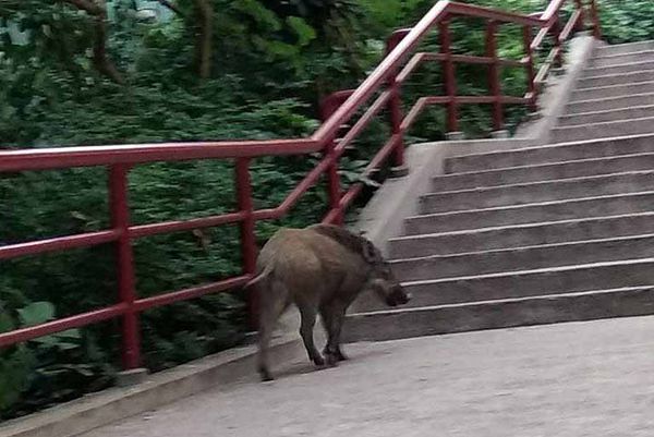 【香港商報网訊】記者萬家成報道:黃大仙飛鵝山對落的富山邨發生野豬連環傷人罕見事件,一頭重約300磅的獠牙大野豬,昨日清晨下山覓食期間,突然走入邨內發狂撞跌一名女子並咬傷其手腳,有見義勇為男街坊上前揮舞雨傘驅趕時同遭野豬咬傷腿,及後大野豬逃至100米外再咬傷另一名老翁手臂,牠最終被多名街坊合力驅逐出邨返回山上,3名傷者傷勢幸無大礙。