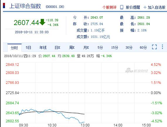 午评:沪指跌4.34%击穿熔断底后逼近2600