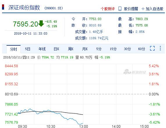 截止午间收盘,沪指报2607.44点,跌幅4.34%,深成指报7595.20点,跌幅5.19%;创指报1274.13点,跌幅5.39%。