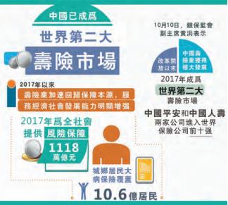 銀保監會副主席黃洪當日表示,2017年,中國成為世界第二大壽險市場,壽險業為全社會提供風險保障1118萬億元,城鄉居民大病保險覆蓋10.6億居民。