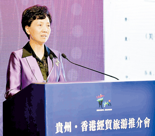 諶貽琴作主題推介時,用「珠聯璧合,碩果累累」高度評價貴港合作,希望貴州在大數據產業、先進制造業、金融業、綠色優質農業、旅游業方面與香港再拓合作空間。
