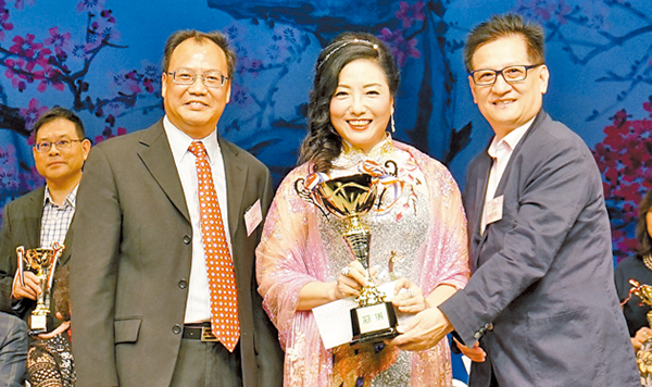 鍾子權(右)、劉任輝(左)為冠軍朱玉蘭頒獎。