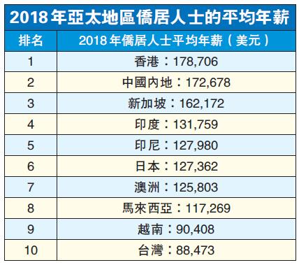 【香港商报网讯】漂洋過海討生活往往不易,然而國際化的香港一如既往的令人心馳神往,僑居香港人士更獲得不俗回報。汇豐(005)昨日發布調查指,在香港僑居人士平均薪酬錄得亞太地區最高,達17.8萬美元(約140萬港元),較全球各地僑居人士的平均水平高出7.2萬美元(約56.4萬港元)。 香港商報記者 邱媛媛